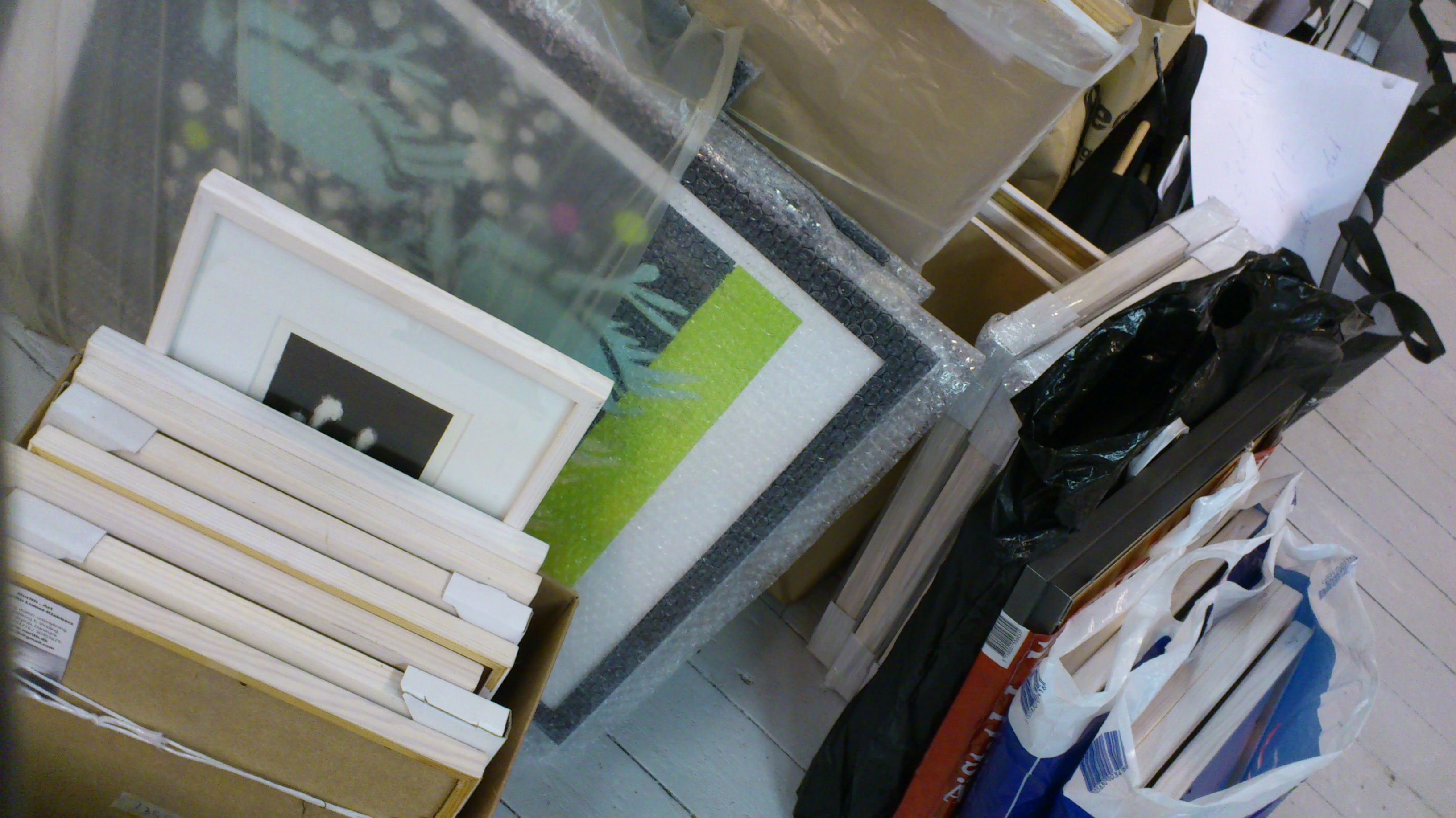 Grafik i lange baner fra værkstedets medlemmer. Klar til udstilling på Vingsted hotel- og konferencecenter. Sidste udstillingsdag 31. januar 2014.