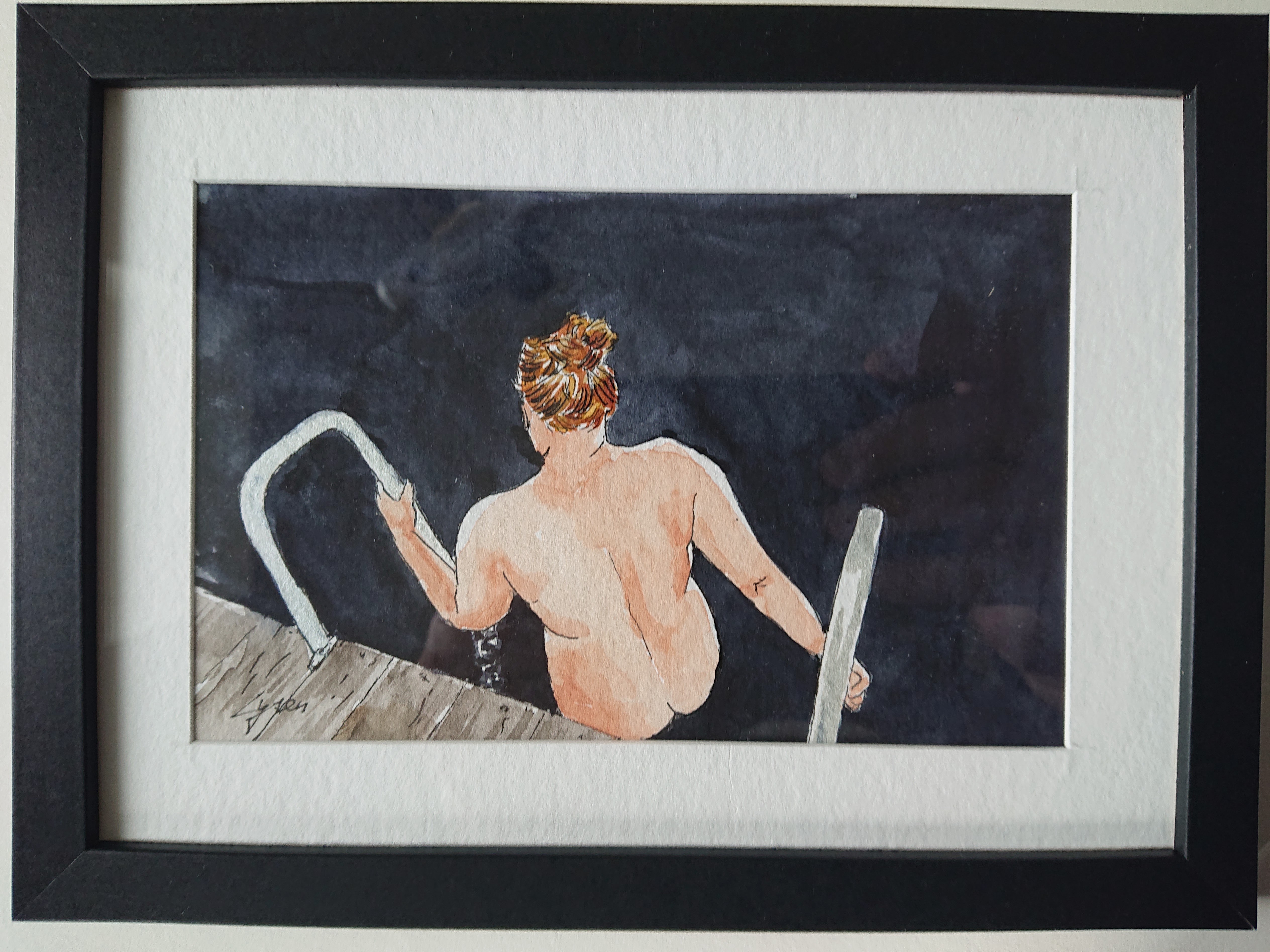 Arbejder med indtryk fra vestkysten. fortrinsvis små akvareller med et enkelt udtryk og enkelt motiver. Inspiration til mine motiver kommer fra fugle, mennesker, vinterbader, havet, fisk, musik. mm.